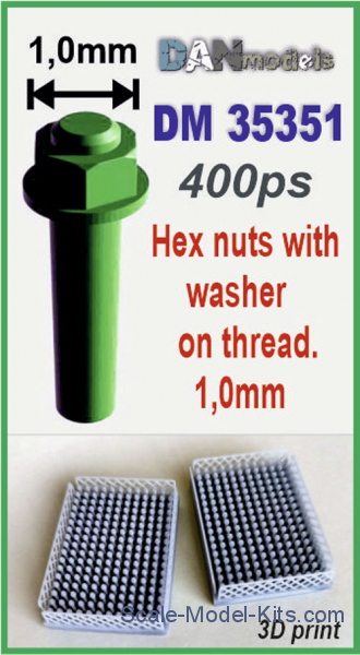 Accessories for dioramas. Hex nuts with washeron thread 1mm, 400 pcs in scale 1/35 (DAN Models No.35351)