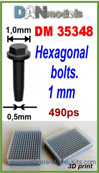 Accessories for dioramas. Hexagonal bolts, 1mm in scale 1/35 (DAN Models No.35348)