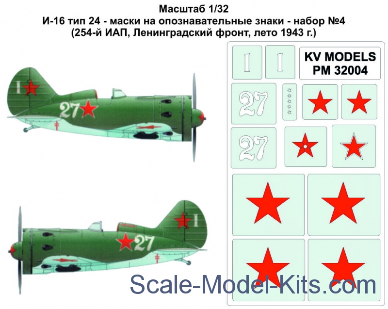 Mask for I-16 type 24 #4 (254th Fighter Regiment, Leningrad Front, Summer, 1943) in scale 1/32
