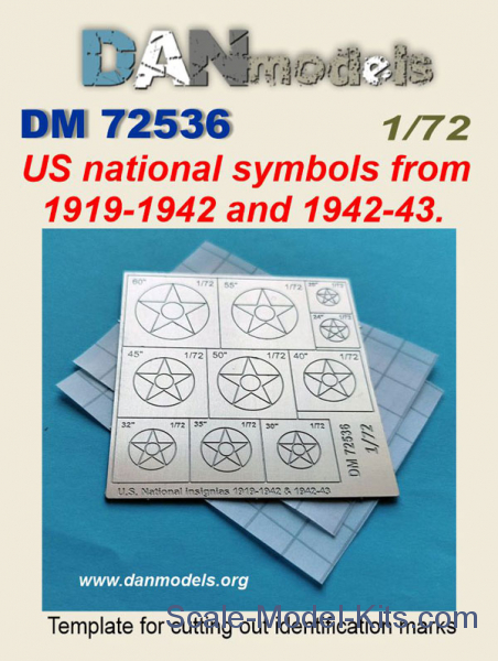 US aircraft national insignia (1919-42 and 1942-43) mask template in scale 1/72