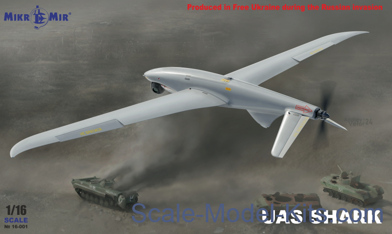 Ukrainian unmanned aerial vehicle "Shark", Armed Forces of UkraineSKU: MM16-001Manufacturer: Mikro Mir Scale: 1:16 Price: $24.20 Plastic model 1/16 Ukrainian unmanned aerial vehicle "Shark", Armed Forces of Ukraine (Micro-Mir No.16-001) This set includes: