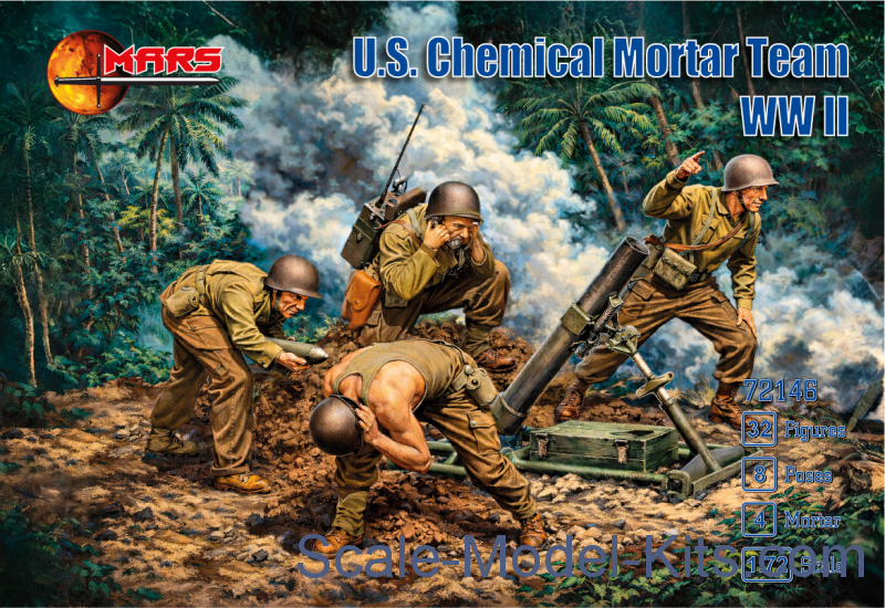 WWII U.S. Chemical mortar teamSKU: MS72146Manufacturer: Mars Figures Scale: 1:72 Price: $9.50 Figure set. WWII U.S. Chemical mortar team in scale 1:72 (Mars Figures No.72146) This set includes:
